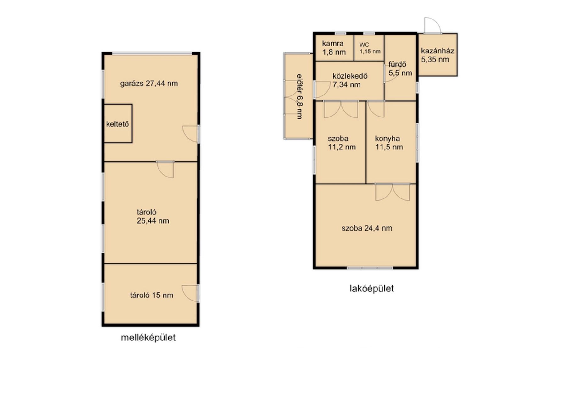 A telken a lakóingatlan mellett az alábbi felépítmények is megtalálhatóak: