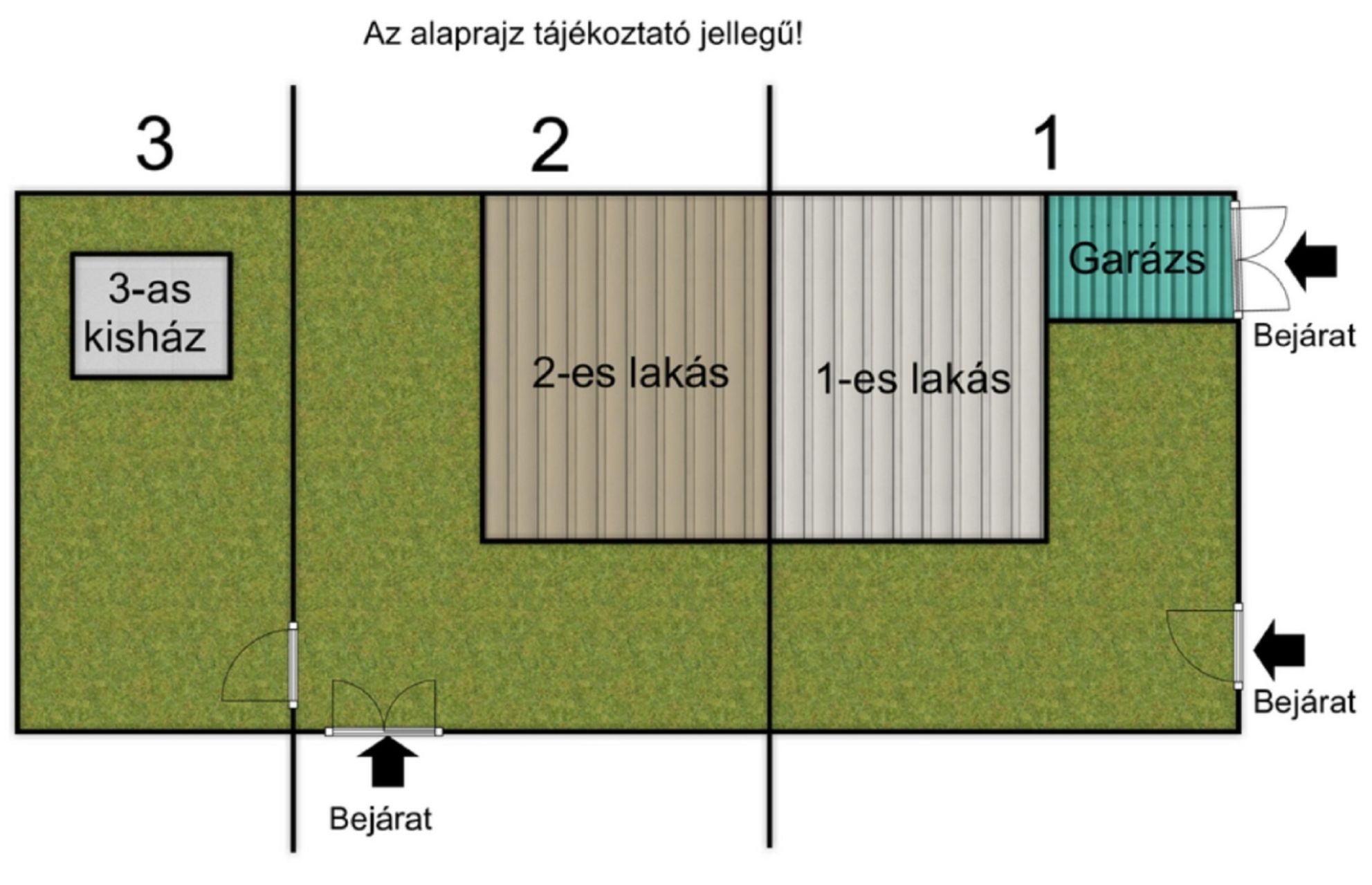 A telken 3 ingatlan található a mellékelt térképen beazonosítható.