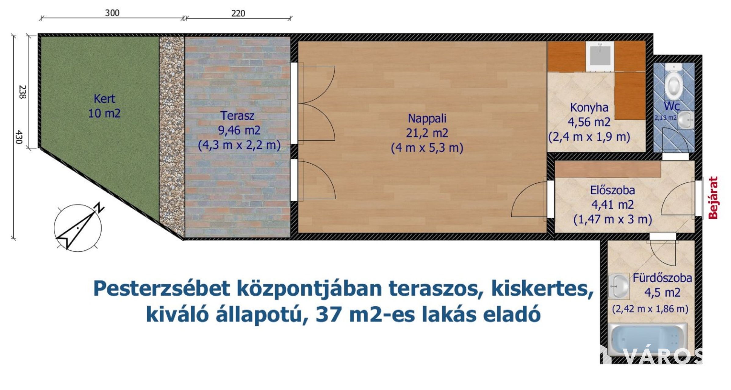 Teraszos, kiskertes 37 m2-es álomlakás eladó Pesterzsébeten