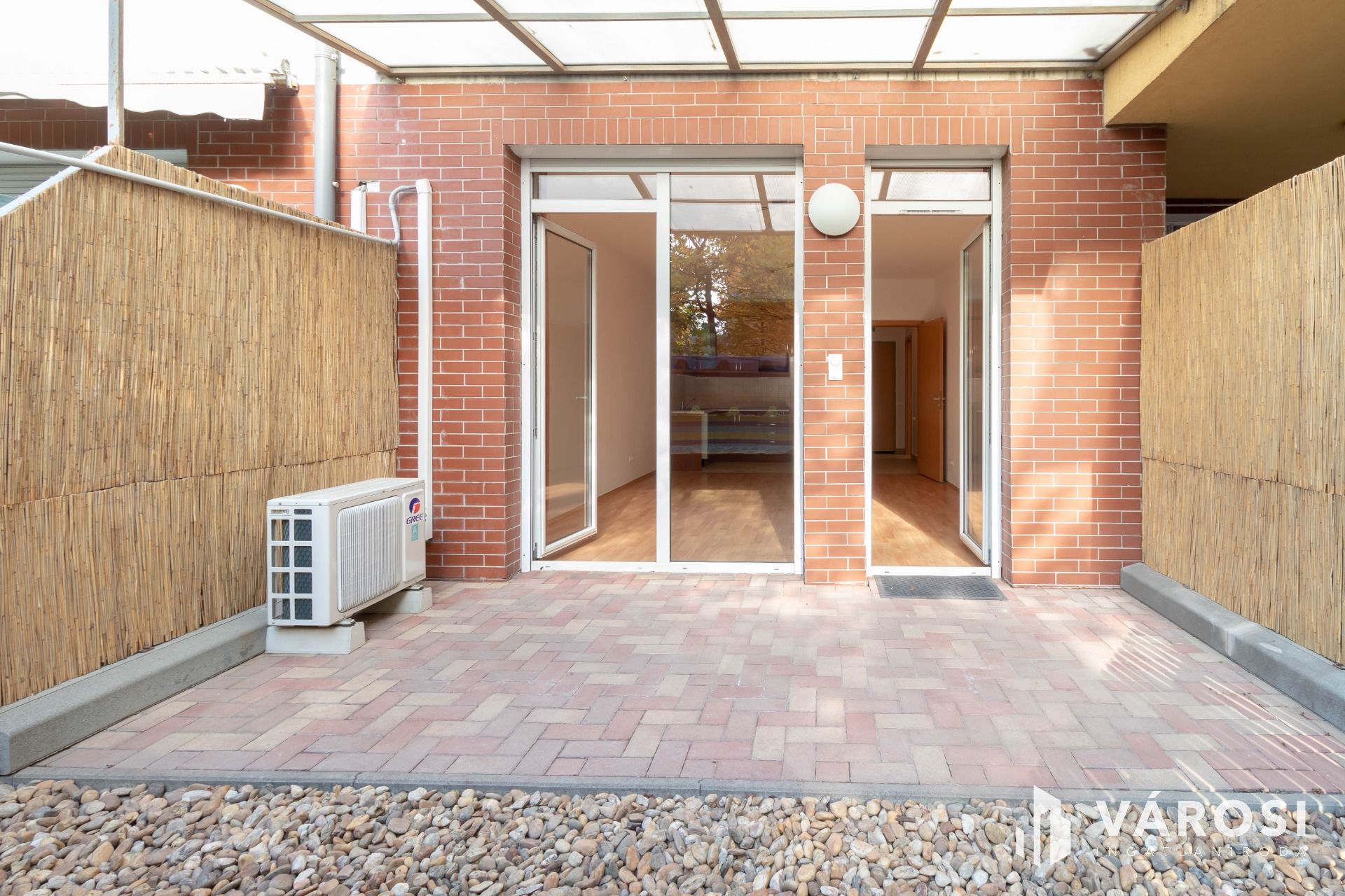 Különlegessége a nappaliból közvetlenül nyíló 9,5 m2-es, kövezett terasz és az előtte lévő 10 m2-es, műfüves, saját kiskert, melynek köszönhetően ez az ingatlan egy igazi kis oázis, egy valódi kis személyes sziget.