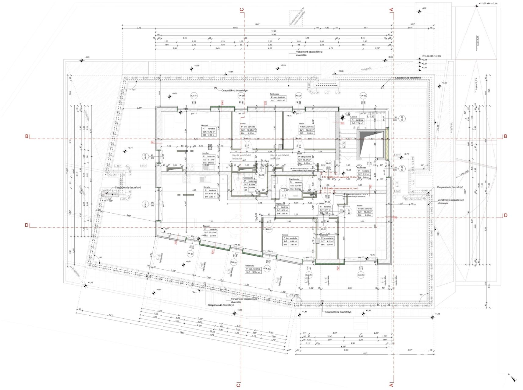Alapterület: 75,73 m² + 92,84 m² tetőterasz