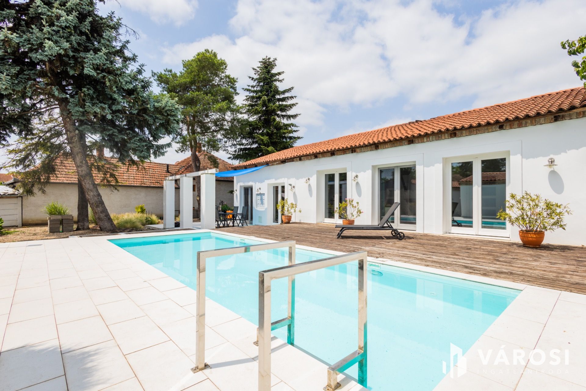 A kertben egy 3x 8 m alapterületű sósvizű medence is helyet kapott, mely tovább fokozza a mediterrán hangulatot.