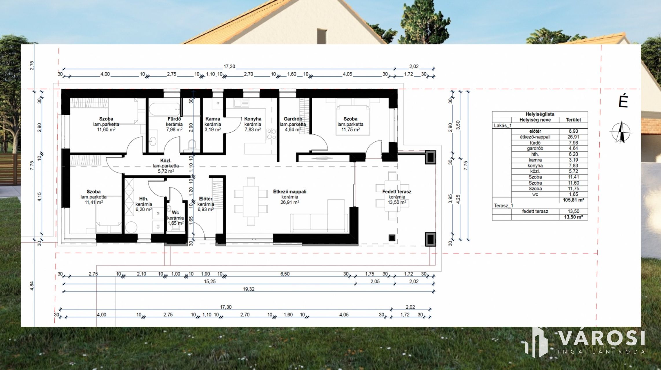 + Fedett terasz: 13,5 m2