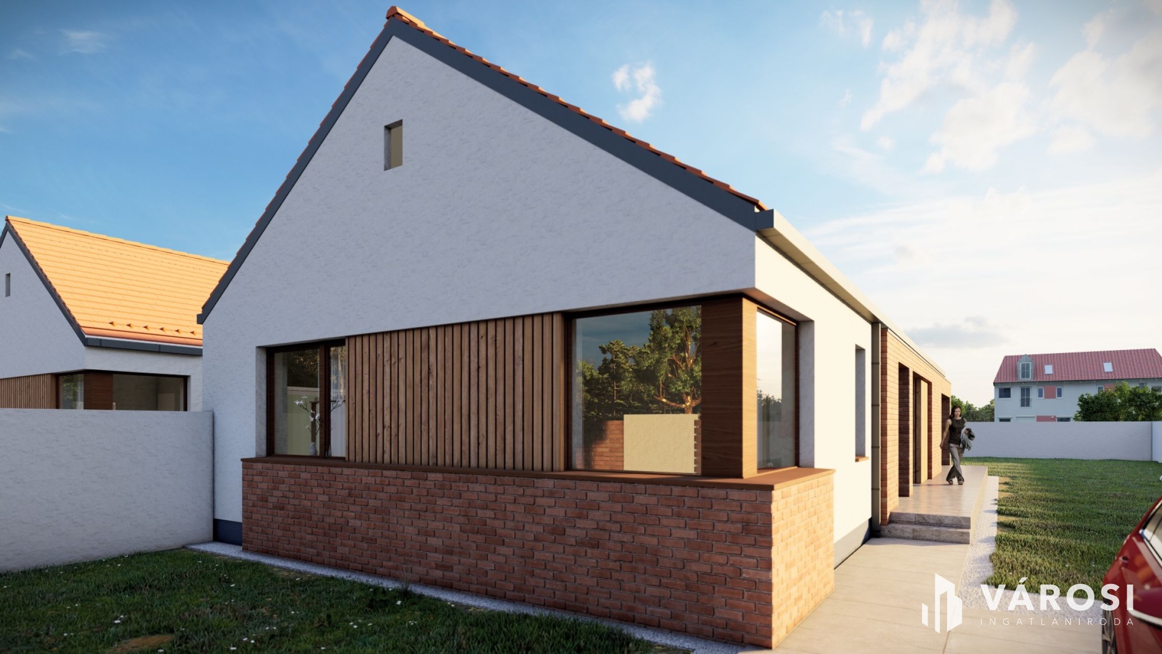A házban tágas amerikai konyhás nappali + 3 kényelmes szoba, gardrób, valamint külön fürdő és WC kap helyet.