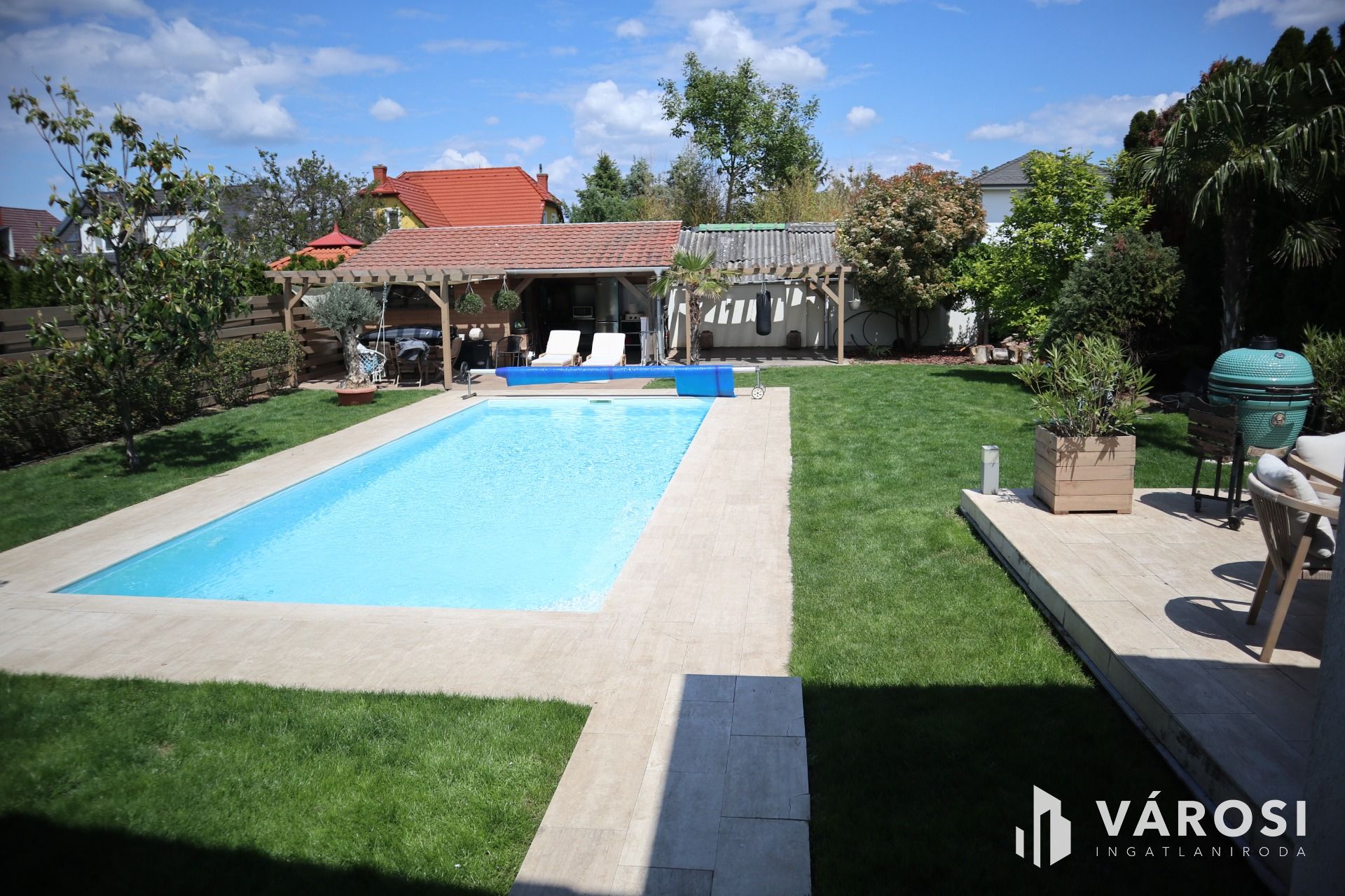 - parkosított udvar + grillező + kert világítás