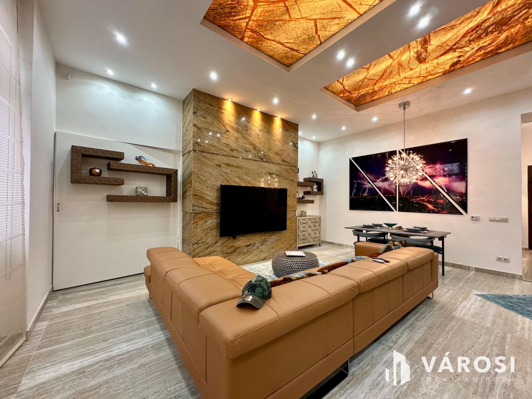 A felújítás a legnagyobb gondossággal és figyelemmel történt: egyedi gyártású, beépített szekrények, beltéri ajtók, konyhabútor, hangulatos erkély, tágas fürdőszobák, gondosan válogatott műalkotások és tapéták, projektor a hálószobában, valamint egy fantasztikus nappali teszik különlegessé az otthont.